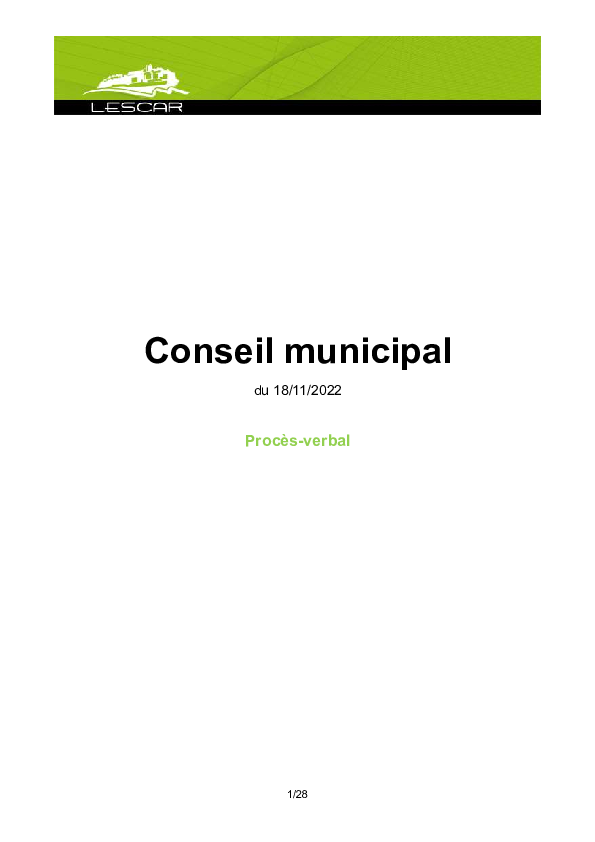 Procès-verbalProcès-verbal du conseil municipal du 18 novembre 2022 Télécharger PDF - 489,1 Ko1 documentPublié le 30 mars 2023