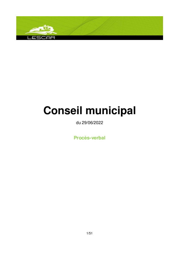 Procès-verbalProcès-verbal du conseil municipal du 29 juin 2022 Télécharger PDF - 889,3 Ko1 documentPublié le 29 juin 2022